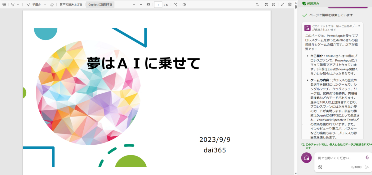 クリックしてEdgeで開いて、Bing Chat Enterpriseを使うと・・・